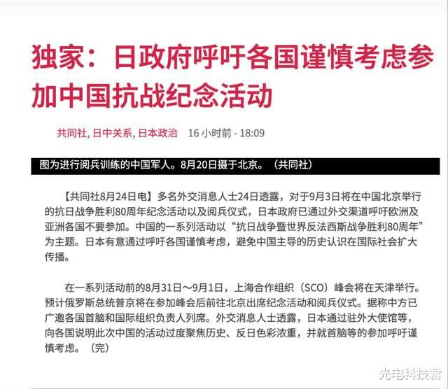 据日本共同社消息,日本政府通过外交渠道呼吁欧洲、亚洲各国不要参加中方举办的抗日战争胜利暨世界反法西斯战争 80 周年主题活动,日本称“各国应该谨慎考虑,避免中国主导的历史认识在国际社会扩大传播”。